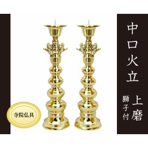 | 商品の特徴 | 寺院仏具] 中口火立(獅子付) 色付 1尺8寸 1対 【ローソク立。楽天市場】中口火立(獅子付) 色付 1尺3寸 1対(2本入)【在庫処分。寺院仏具] 中口火立(獅子付) 色付 1尺8寸 1対 【ローソク立。数回使用ですが、長保管のためキズや汚れが見られる場合があります。高さ:約34cm。楽天市場】国産品 真鍮製 寺院用火立中口 獅子なし 磨き 5.0寸/1本 | ||