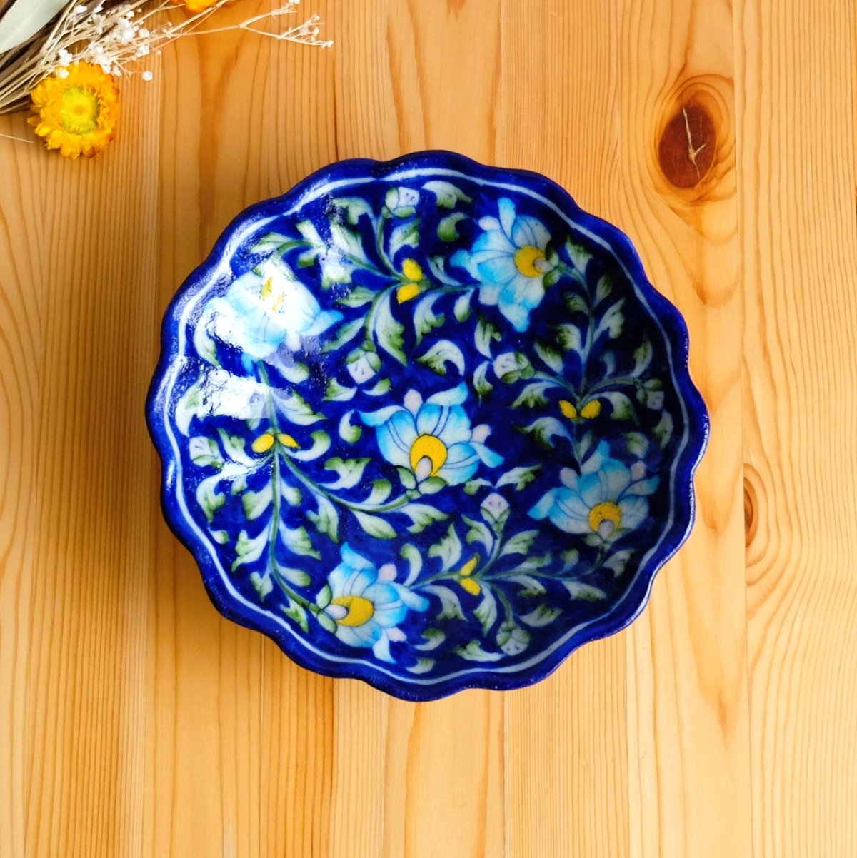 - キッチン・食器 > 食器 > ベルナルド/Bernardaid オーダーメイド青い花柄の陶器製四角皿2枚セット 陶器飾り皿 インド ブルーポタリー 波形 青地に花柄 | インド雑貨のお