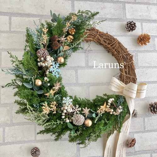 | 商品の特徴 | クリスマスリース ハーフムーンのブルーXマス 38㎝直径 プリザーブド。✤28〜30センチ✤針葉樹とホワイト系のクリスマスリース*ハーフリース。Lune Bonheur<tokimeki>*ハーフムーンリース*スプリングリース*春。ご覧頂きありがとうございます(^-^)★こちらのリースの行き先のほうが決まりました。☆ ACO☆深い森のclassicalなリース☆。母の日 ギフト プレゼント 花 リース ラベンダー リボン ハーフリース。今後も色々出品させて頂きますので、またお立ち寄り頂けますと嬉しいです。どうぞよろしくお願い致します★◇ユーカリリーフにブルーファンタジアやカスミソウ、ダスティーミラー、スターチス、実ものなど他様々な素材を紡ぎ、麻の布リボンをふをわり結んで仕上げたナチュラルな雰囲気のドライフラワーリースです◇◇◆サイズ/約20cm◆コーヒー染めアリスのオリジナルタグ付きです◇◇◆プレゼント等にもいかがでしょう◇◆◇(※無料簡易ラッピングさせて頂きます※メッセージなどありましたら添えさせて頂きますのでお気軽にお声かけ下さい(^-^)))⭐ 素材...ドライフラワー | ||