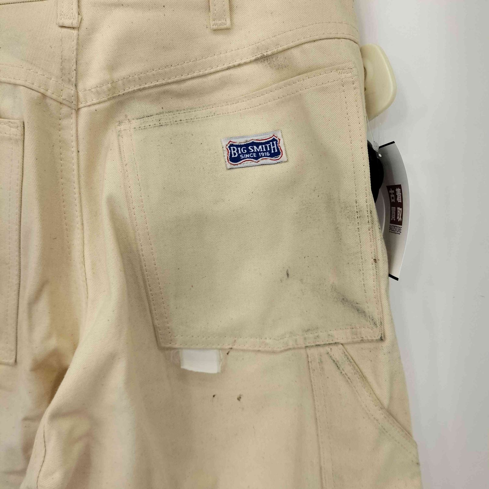 | 商品の特徴 | 70s Big smith ヴィンテージ ペインターパンツ 生成り ビッグスミス。BIG SMITH - デッドストック 70s ビンテージ ビッグスミス ペインター。70s ヴィンテージ VINTAGE ビッグスミス 生成り ペインターパンツ。70年代頃の生成りのペインターパンツです。イン、アウトシームはダブルステッチ。レングスはやや長めでロールアップ派の方にも良さそうです。・コンディション多少の薄汚れ、色ムラはあるものの大きく目立つようなものはないUsed品で、多少の薄汚れがあるUsed品前提でビンテージ慣れされている方には許容範囲内と思います。BIG SMITH - デッドストック 70s ビンテージ ビッグスミス ペインター。ブランドはBig smithで、ジッパーはSCOVILLです。N*e様 vintage fivebrother armada trouser。新品0size 25aw sacai Cotton Chino Pantブラック。裾はオリジナルチェーンで、裏側チェーン部分に数色使っている点に遊び心を感じます。USA製カーハート Carhartt W31L32 ダブルニー B01ブラック。70s ベイカーパンツ。もう少し新しくなるとDickiesのようにケツポケにでっかいタグが付くので、しっかりオールドのこのモデルはオススメです。STONE ゴースト カーゴパンツ。Carhartt ブラック ダブルニーパンツ。・実寸:ウエスト....45.5cm股上....32cm股下....79cmワタリ....33cm裾幅....24cmペインターパンツ 80s 90s | ||