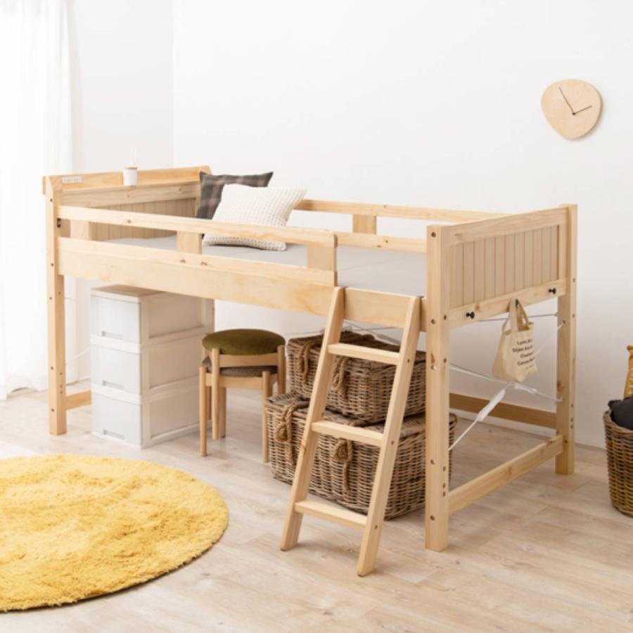 - ベッド・マットレス > ロフトベッド・システムベッド > ロフトベッド 萩原 HAGIHARA 天然木 マット付属 階段付き コンセント付 HAGiHARA(萩原) ロフトベッド ベッド下76.5cm 木製 2口コンセント