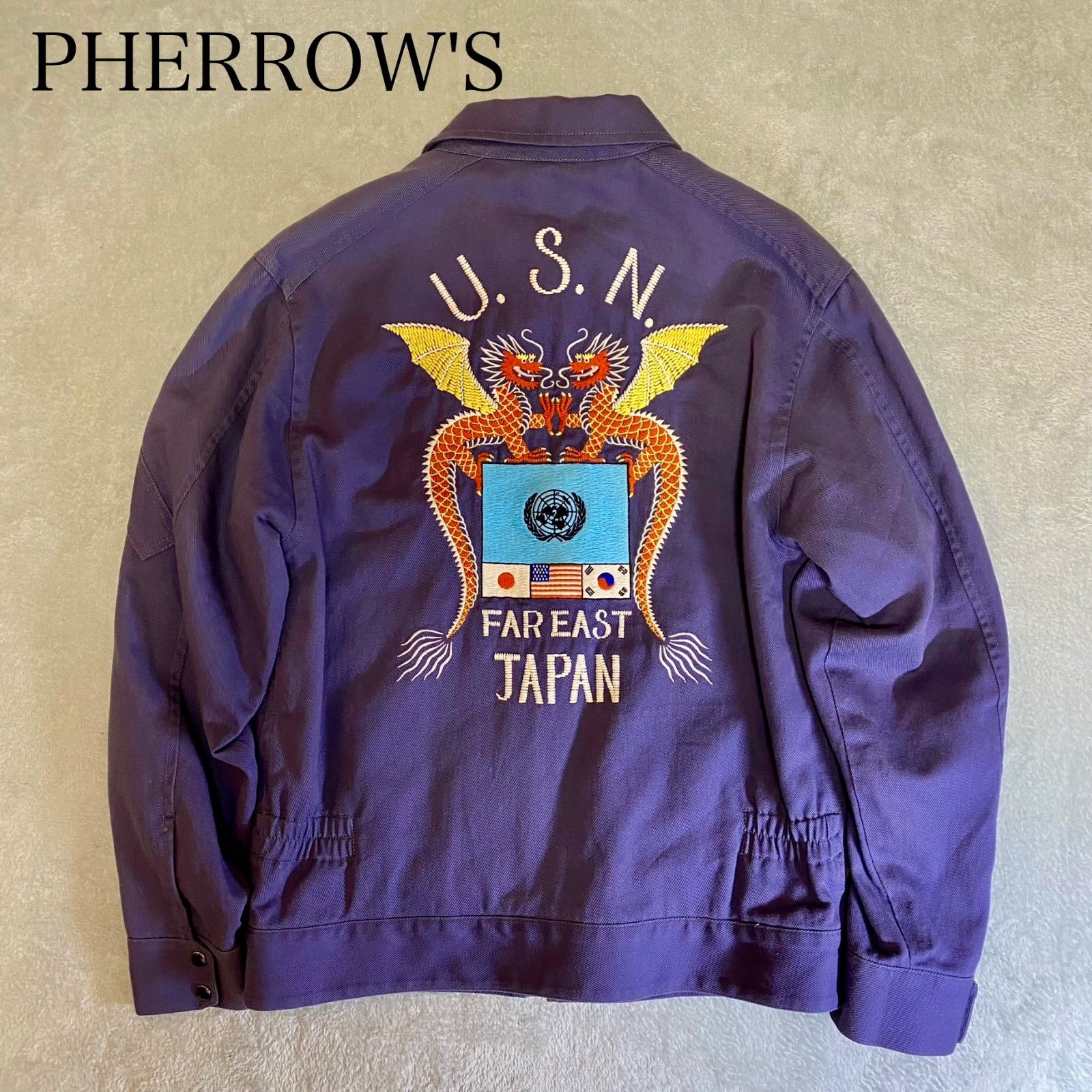 - メンズ > ジャケット・アウター > 希少 スーベニアジャケット 刺繍 PHERROW'S フェローズ U.S.N PHERROWS】スーベニアジャケット ベトジャン ミリタリー 刺繍 希少