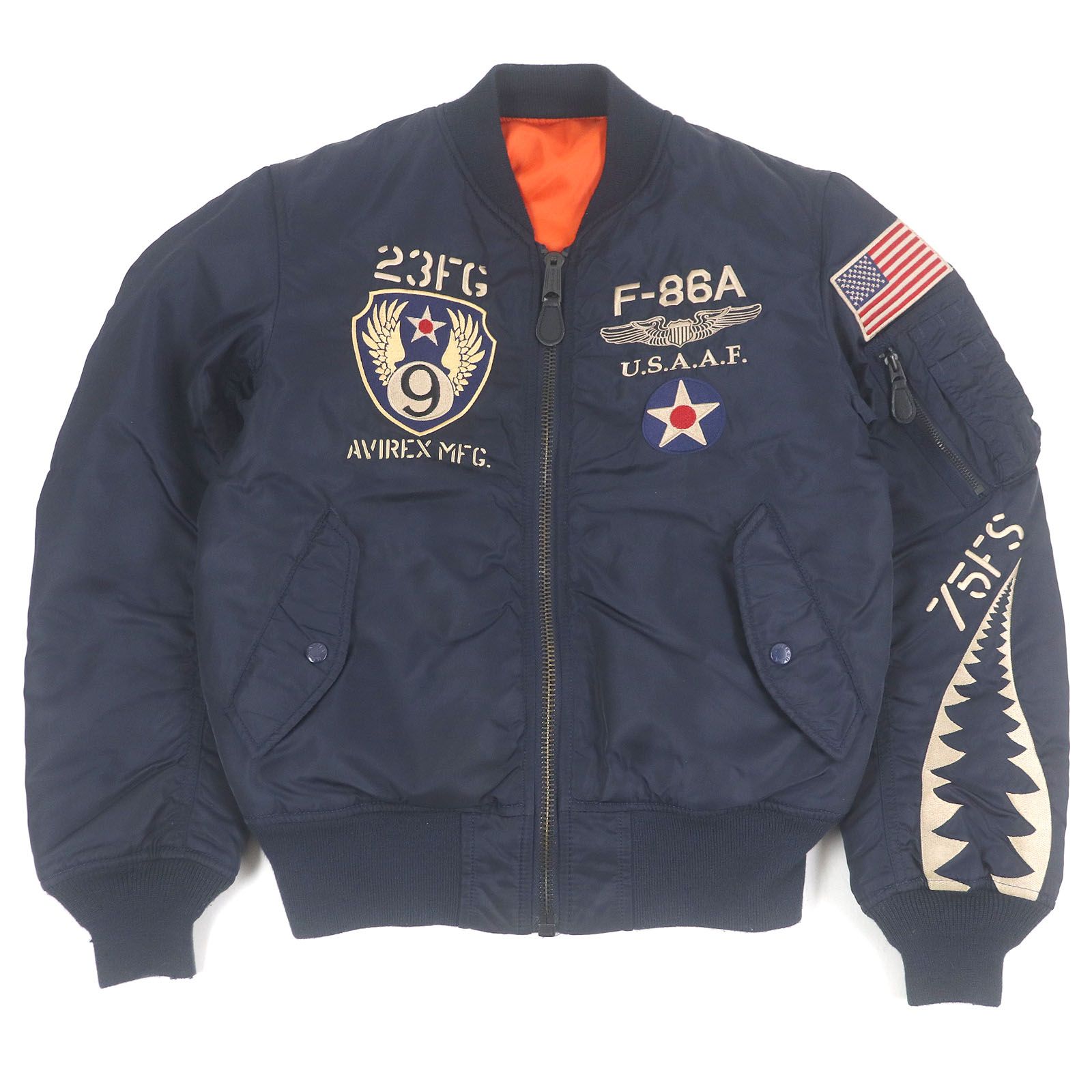 - メンズ > ジャケット・アウター > ★希少 XLサイズ★ AVIREX フライトジャケット MA1 ワッペン 紺 美品/希少✨AVIREX フライトジャケット MA-1 刺繍 ワッペン L 希少
