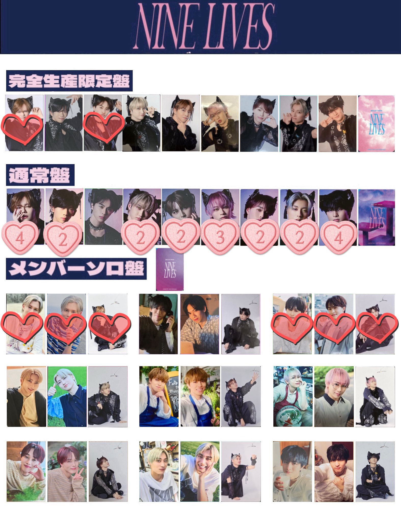 | 商品の特徴 | 超特急 NINELIVES 通常盤 完全生産限定盤 ハル盤 トレカ・シリアル付き。追加特典会シリアルナンバー付き》NINE LIVES【通常盤<初回プレス。22nd SG「NINE LIVES」| 超特急。それぞれ未使用のシリアルが入ってます。NINE LIVES <初回限定メンバーソロ盤(ハル盤)/オンライン限定/『NINE。 | ||