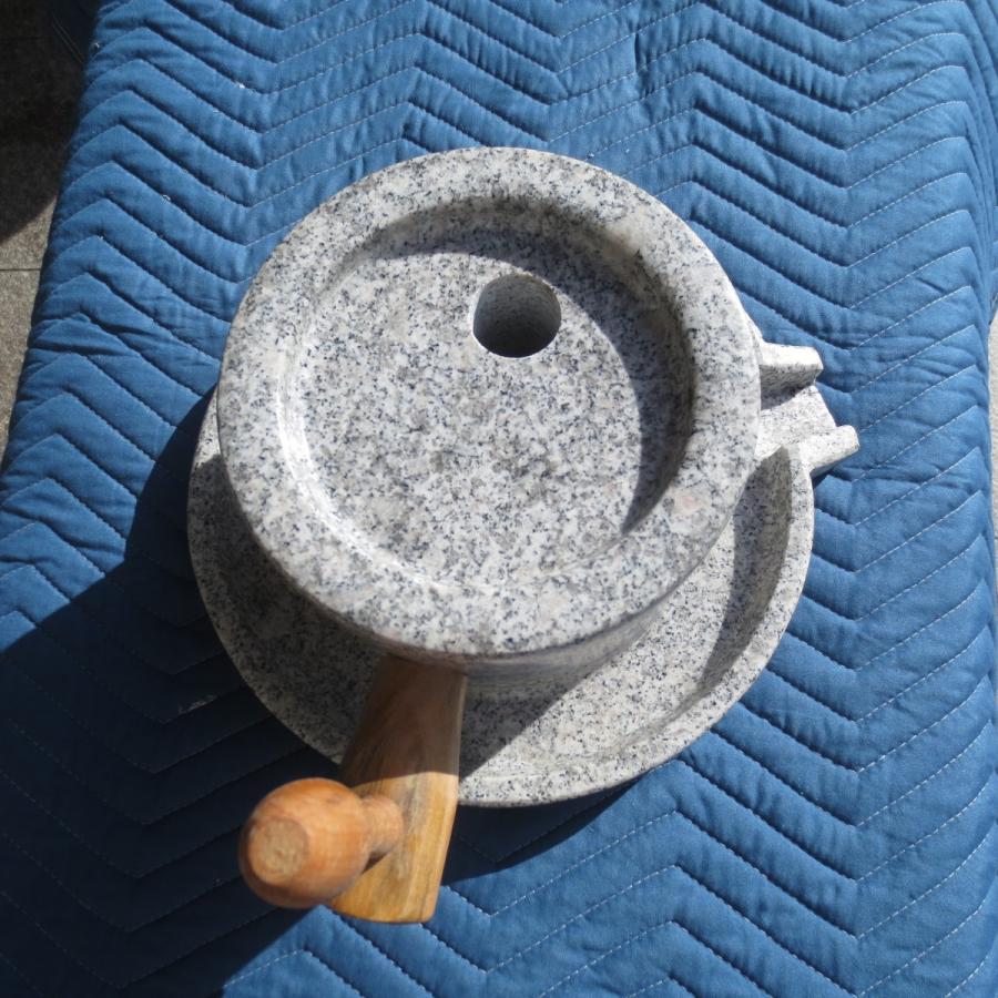 | 商品の特徴 | 石臼 (いしうす) ひき臼 (ひきうす)御影石 20型 みかげ石 送料無料。Amazon|石臼 (いしうす) ひき臼 (ひきうす) 御影石 (20型)|そば。石臼 (いしうす) ひき臼 (ひきうす)御影石 20型 みかげ石 送料無料。石臼★20型 御影石 ひき臼(石臼)昔ながらの 石臼 ひきうす 石うす 製粉器 粉 ミル 小麦 お茶 そば 米粉 ウコン 【調理器具】手打ちそば 蕎麦 小麦 お茶 コーヒー豆 香辛料★御影石 ひき臼(石臼)20型◎上臼・約9kg 約20x20x10cm◎下臼・約7kg 約30x33x4cm◎総高・約16cm◎総重量約16kg●蕎麦粉、小麦、お茶などがひける石臼です!●ゆっくり挽くことで素材本来の香りを損なうことなく細かくできます。●手打ち蕎麦などを本格的にご自宅で!●食物繊維も壊さずにそのままの風味を生かすことができます。●蕎麦の実やコーヒー豆、茶、香辛料、ハーブなど、いろいろお楽しみください。●店舗などのオブジェやディスプレイにも!【注意事項】当店在庫品から出荷します。御影石の天然原石から削り出した手作り手加工品につき寸法には+-2cm程度の個体差と重量差が御座います。また石目・色目なども掲載写真と同一ではございません。 石臼上台に差し込んである取っ手は小槌で打ち込むため、木材・石材双方に多少のキズや欠けが見られます。石臼としての使用に問題がない限り交換返品はお受けできません。。Amazon|石臼 (いしうす) ひき臼 (ひきうす) 御影石 (20型)|そば。閑心窯 かまどはん。staub ストウブ ココット oval。All-Clad Copper Core 8inchフライパン 蓋付き。【美品】ストウブ ワナベ シフォンローズ L 20cm 両手鍋 シリアル有。ポケット糖度計・濃度計。6/14迄ル・クルーゼ20センチ鍋 スチーマー レシピ本 鍋敷き ★おまけ付き。魔法のフライパン 北京鍋 27cm | ||