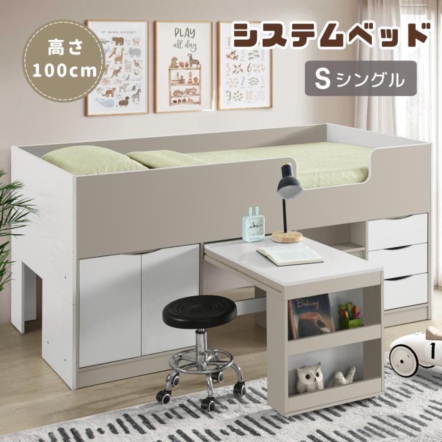 システムベッド ロフトベッド 階段付き S 木製 シングル ベッド ロータイプ システムベッド ロフトベッド 階段付き S 木製 高さ100cm シングル