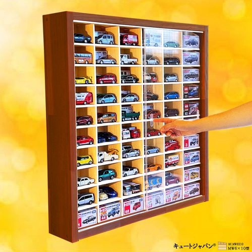 - 棚・ラック・シェルフ > 木製ラック・ウッドラック > アクリル障子付 ミニカー収納棚 トミカ120台 ロング20台 日本製 120台 トミカ収納ケース アクリル障子付 マホガニ色塗装 日本製