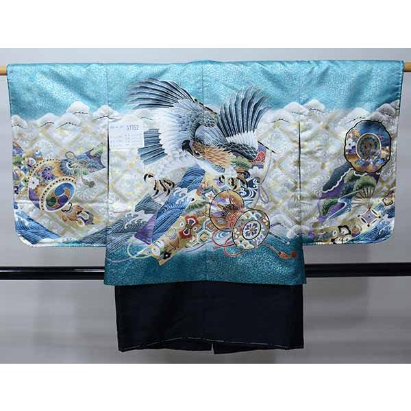 - 季節・年中行事 > 七五三 > 七五三 五歳 男児 羽織・着物・襦袢3点セット M寸 豪華絢爛 綸子 青緑地 鷹 七五三 五歳 男児 羽織・着物・襦袢3点セット M寸 豪華絢爛 綸子地 青