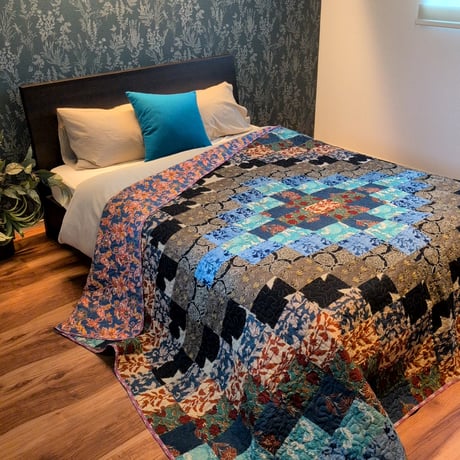 - ラグ・カーペット・マット > ラグ・カーペット > 未使用※インド ブロックプリント 中綿入りキルト ブルーグレー マルチラグ 未使用※インド ブロックプリント 中綿入りキルト ブルーグレー