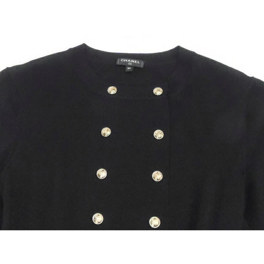 - レディース > ワンピース > CHANEL フリル付きワンピース ブラックラメ入り ココマークボタン【美品】 CHANEL(シャネル) ラメ入りロングワンピース 裾フリル ロゴボタン 黒