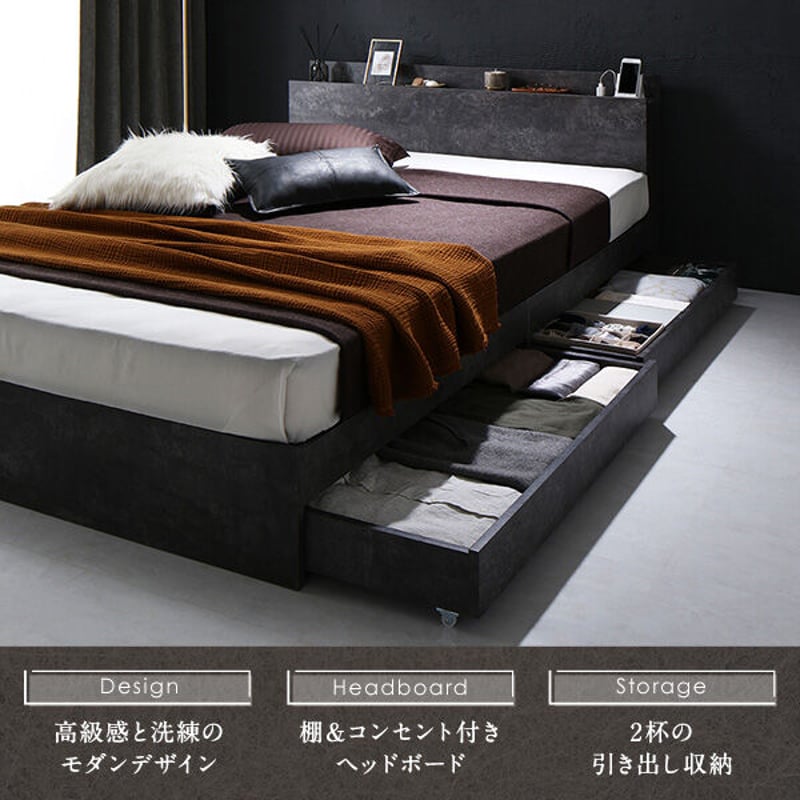 - ベッド・マットレス > ベッドフレーム > セミダブル・Newデザイン2杯収納コンセント付きベッド・ウッドブラック 9-5 セミダブル・Newデザイン2杯収納コンセント付・ダークグレー