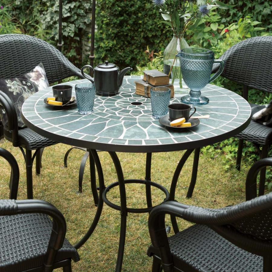 - 机・テーブル > センターテーブル・ローテーブル > かわいい!おしゃれ!モザイクタイル ローテーブル グリーン dinos(ディノス) グリーンモザイクテーブル径90cm ガーデン