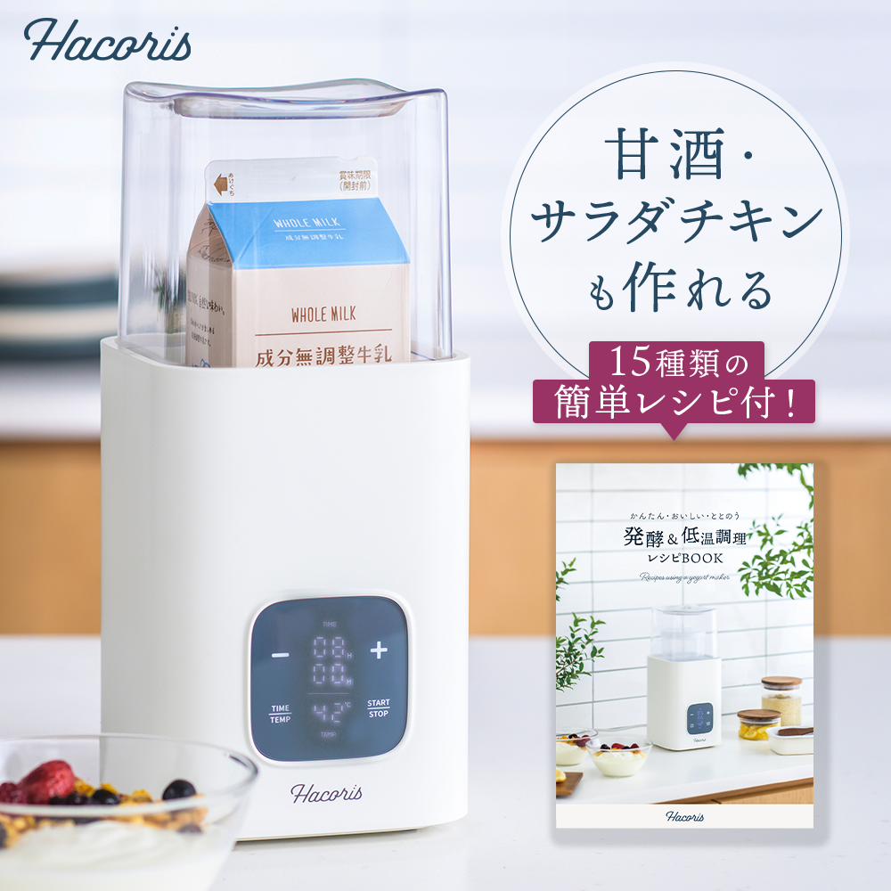| 商品の特徴 | 新品未使用/タニカ/ヨーグルティアSガラスセット(ホワイト)YS-02GW。新品未使用/タニカ/ヨーグルティアSガラスセット(ホワイト)YS-02GW。ヨーグルティアS ガラスセット ホワイト柄 【新品・未開封】。⭐️【新品未使用】タニカヨーグルティアSガラスセット(ホワイト)YS-02GW【商品説明】本体、容器(HARIO製ガラス容器2個)、レシ ピ集と全て揃ったセットのため、届いたその日から誰でも簡単に発酵食が作れる!【設定温度】25℃~70℃ (温度管理精度±3℃)【タイマー設定】10分~50分・1~48時間 【メモリ機能】過去の設定(直近3回分)【ブザー音】操作音はオン・オフ切り替え【付属品】ガラス内容器×2・取扱説明書×1・ヨーグルトスプーン×1・レシピ集×1・温玉スタンドS×1・取手ふた×1【外形寸法】高さ 188mm・外径 160mm 【重量】760g 【内容器容量】1100ml 【電源】AC100V(50/60Hz) 【電源コード長】1.8m 【定格消費電力】30W【対応発酵食】ヨーグルト、甘酒、塩こうじ、醤油こうじ、京風白みそ、納豆、チーズ、天然酵母、その他 【低温調理】温泉卵、ローストビーフ、チャーシュー、コンフィ、サラダチキン、その他【ヨーグルトの作り方】材料:1本(1L)、ヨーグルト:1カップ(100g) <STEP01>材料を入れる <STEP02>温度とタイマーをセットし発酵させる <STEP03>発酵終了後、冷蔵庫で冷やす(1/5のコストで自家製ヨーグルトが出来ます!)【状態】新品未使用保管品です。ヨーグルティアS ガラスセット ホワイト柄 【新品・未開封】。外箱に一部凹みがあります。【未使用】アイリスオーヤマ PMPC-MA4-B 電気圧力鍋 4L。写真撮影の為、外箱は開封しましたが内容物は未開封です。業務用 NICHIWA ニチワ リヒートウォーマー。⭐️即購入歓迎です。★新品未開封★T-fal クックフォーミー 3L CY8701JP。宜しくお願い致します。展示未使用品 ボニーク BONIQ BNQ-01 白。 | ||