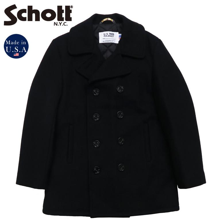 - メンズ > ジャケット・アウター > 【値下げしました】Schott 黒 ウール ピーコート Schott N.Y.C(ショット) Schott ピーコート 740US 24oz ウール