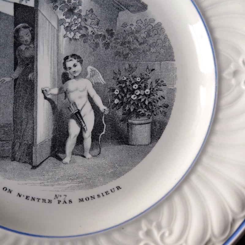 - キッチン・食器 > 食器 > フランスアンティーク クレイユモントロー creil レリーフ デザート皿 Creil & Montereau クレイユモントロー クレイユエモントロー 平皿