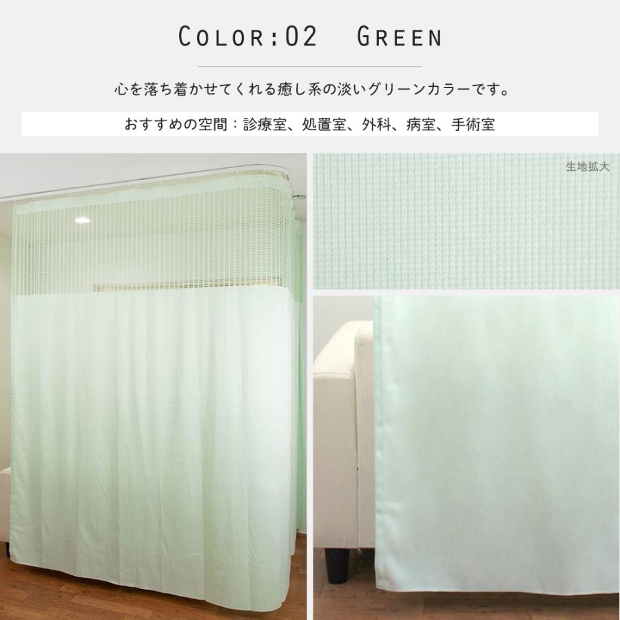 | 商品の特徴 | 整体院 医療用カーテン 防災 グリーン1枚 400x230 整体院 医療用。整体院 医療用カーテン 防災 グリーン1枚 400x230。hb175-1eo-kg.jpg。整体・エステサロン・介護施設など、ベッドを囲うように仕切るカーテンを吊るために多く使われています。一般家庭でも脱衣所などの間仕切り等でご使用いただいています。。病院・医療用カーテン『オールインワン』|業務用通販 スタイルダートプロ。医療現場やロッカールームなどの間仕切りに最適で、強度も一般的な住宅用レールに比べ高く、見た目もスマートに設計。川島織物◆レース&ドレープ◆2枚1組◆W870×H1960◆HP2411BL10。ローラアシュレイ カーテン 訳あり。400×230センチ生地部分薄いグリーン、ネット部分薄い水色になります。サンゲツ カーテン2枚組み 195cm X 200cm | ||