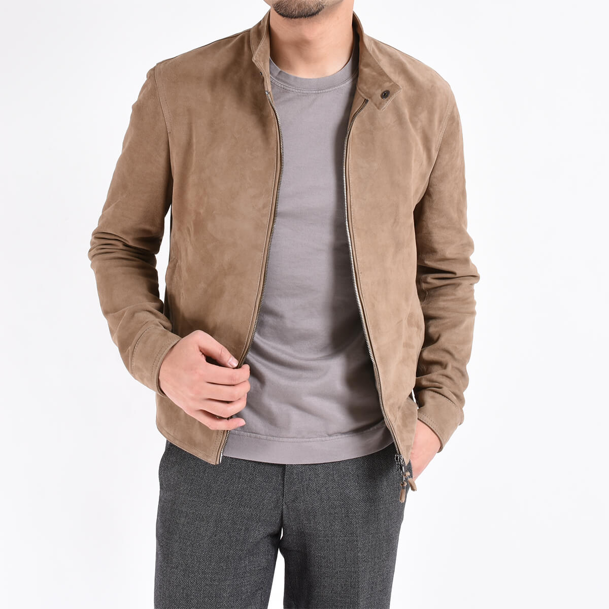 - メンズ > ジャケット・アウター > 【最高級】 EMMETI ゴートスキン スエードライダースジャケット ベージュ 最高級】 EMMETI ゴートスキン スエードライダースジャケット ベージュ