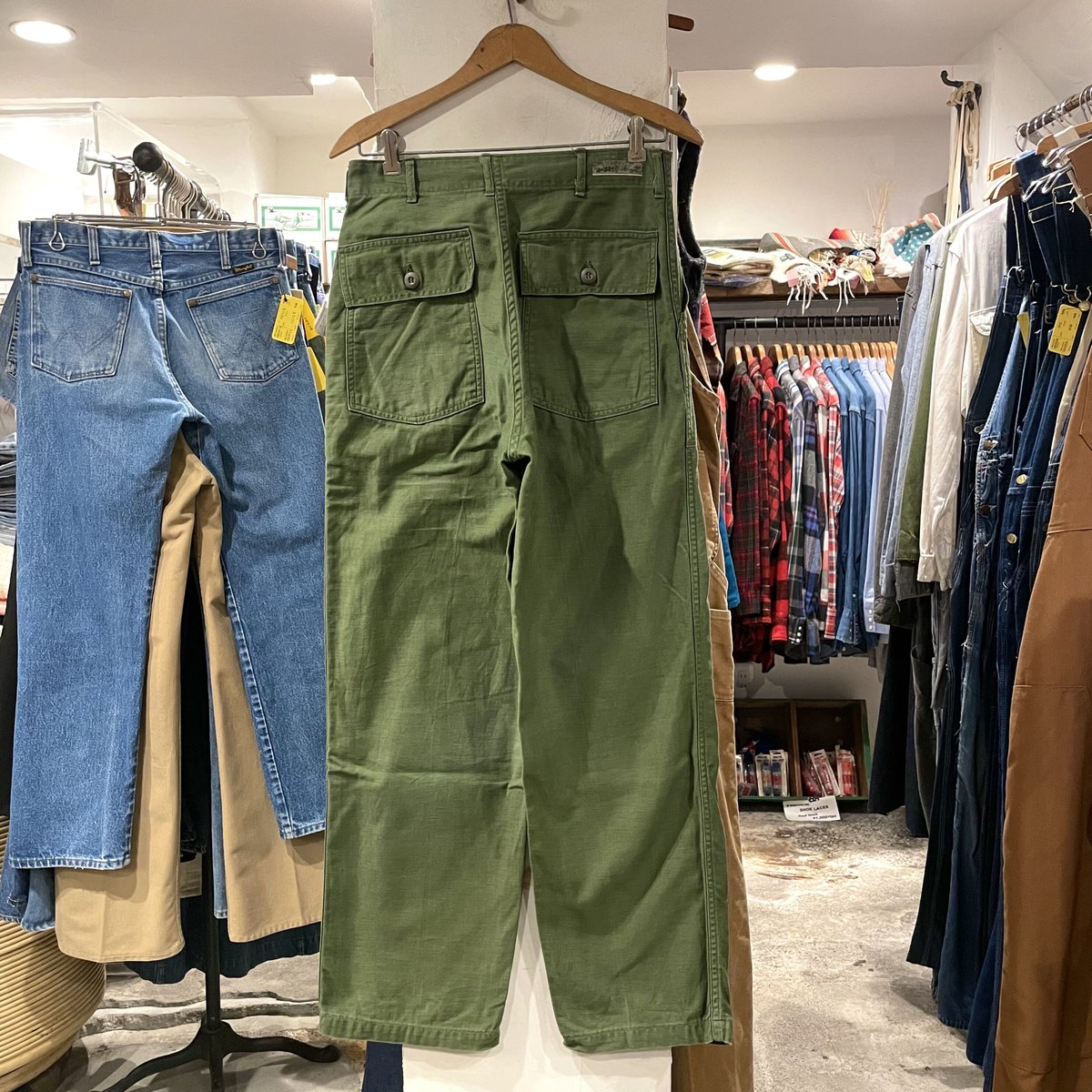 | 商品の特徴 | W36×L31】 60年代 60s usarmy ベイカーパンツ og107 W36×L31】 60年代。W36×L31】 60年代 60s usarmy ベイカーパンツ og107 W36×L31】 60年代。60s ビンテージ US ARMY ベイカーパンツ W36 OG-107 U.S.ARMY ベイカー。【商品説明】 ・値下げ不可商品68年会計の米軍実物のベイカーパンツです。数々のブランドからサンプリングされていますが、横に織られたオリジナルのコットンサテン100%のヴィンテージは別格の風合いです。ボタンは当時物のUFOボタン、フロントジップは真鍮のWALDESになります。約50年前のヴィンテージ品のため、若干の擦れや色褪せはあるかもしれませんが、新品にはない風合いを是非楽しんでいただければと思います。【size】W36×L31詳しくは採寸をご覧ください。【コンディション】・気にならないほどですが、細かい擦れや色落ちあります。ご質問などはコメントいただければなるべく早急にお答えするようにいたします。60年代前期OG107 ベイカーパンツ。ユーティリティパンツとも呼ばれ、フロントのL字パッチポケット、バックのフラップ付きポケットが特徴です。USA製 カーハート Carhartt B01 W34L30 ダブルニー BRN。【FENG SYSTEM】B6 PRINTED DENIM - BLACK。リペアなし、ボタン付け替えなし、オリジナルレングスのゴールデンサイズはなかなか見つかりにくくなってると思います。パンツ rajabrooke PACKABLE OVER PANTS。パンツ HERILL Backsatin Splash Utilitypants。今後の高騰を含めましても、ニーズの高い一本かと思います。carhartt カーハート ダブルニーパンツ ブラック 32×32。パンツ tightbooth cropped cargo pants。ご質問やご相談などあれば、遠慮なく言っていただければ幸いです。COMOLI 21SS コットンダック ぺインターパンツ 3。Timc Inc. TPW Pants 01 ワークパンツ M。(総丈) 105cm(ウエスト) 84cm(股上) 34cm(股下) 73cm(わたり幅) 35cm(裾幅) 23.5cm※平置き採寸です。KAPITAL キャピタル キャンバス ダブルニー ヌーベル カーゴ パンツ。「CHOPPER BUILDER」 RUDEBLACK 34×34。破れなどの心配はありませんので、ご安心ください。80s 米軍実物 L カーゴパンツ ミリタリー ウッドランドカモ カモフラ 迷彩。カーハート 50’s ペインターパンツ。 | ||