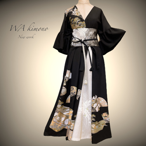 | メーカー | 着物リメイク 黒留袖 ロングワンピース 鶴にグリーンゴールドラメ 作家物 着物リメイク |