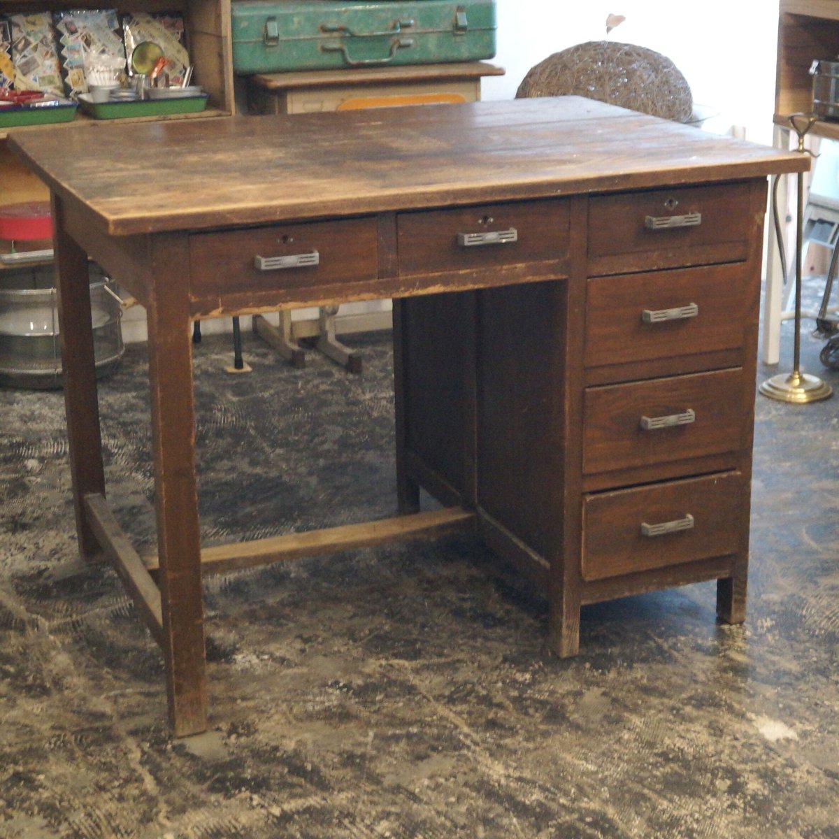 - 机・テーブル > 事務机・学習机 > 木製 勉強机 ワークデスク アンティーク 古家具 書斎 昭和レトロ ビンテージ 木製 勉強机 ワークデスク アンティーク 古家具 書斎 昭和レトロ