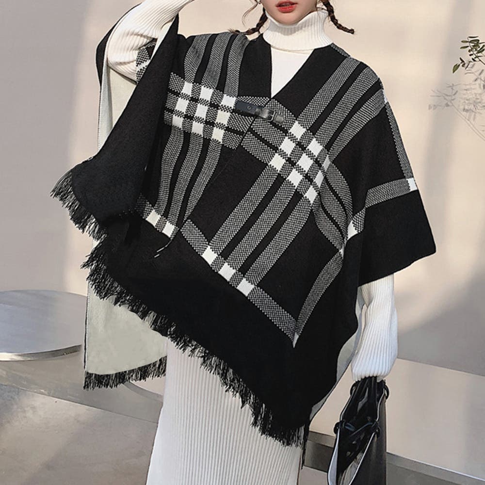 - レディース > ジャケット・アウター > ★お値下げ【DOLCE&GABBANA】グレー ニット ポンチョ ストール付き チェック柄ケープ ニットショールポンチョ[品番:AGCW0003612