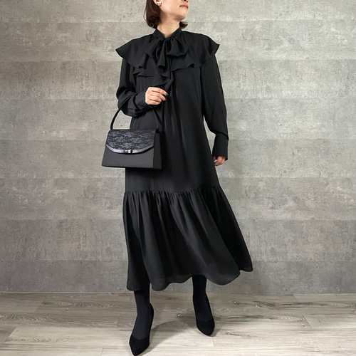 - レディース > ワンピース > katie MAD hoey セーラー ロング ワンピース ドレス ウール 黒 SALE【洗える】1枚で華やか 襟が外せる2wayロングワンピース 黒