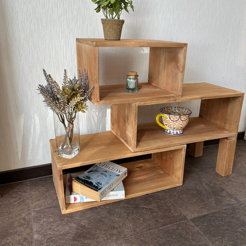 | メーカー | 3段オープンシェルフ 飾り棚 ディスプレイラック 杉材 木製ラック 凹凸3段オープンシェルフ |